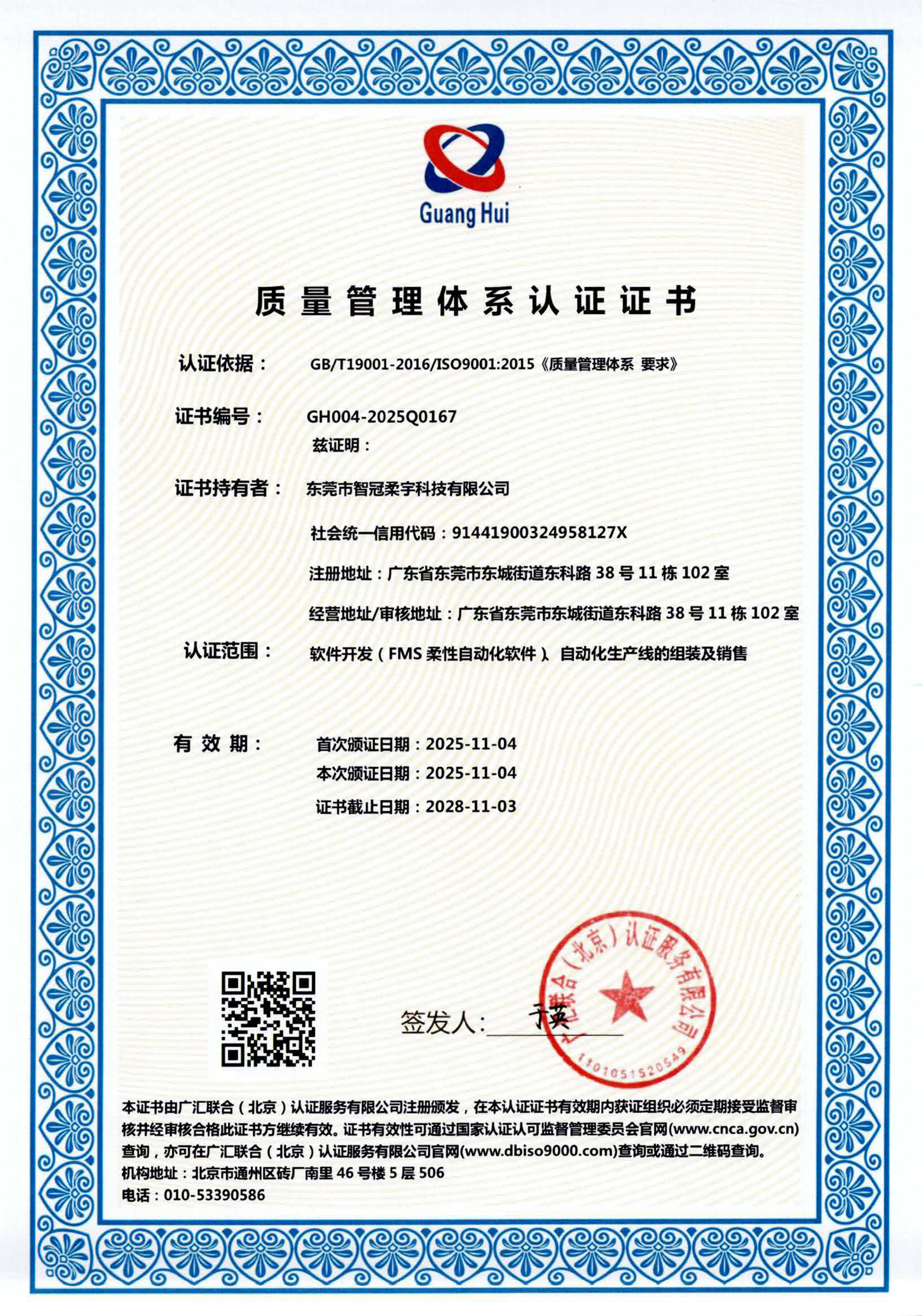 智冠柔宇通过ISO9001质量管理体系认证